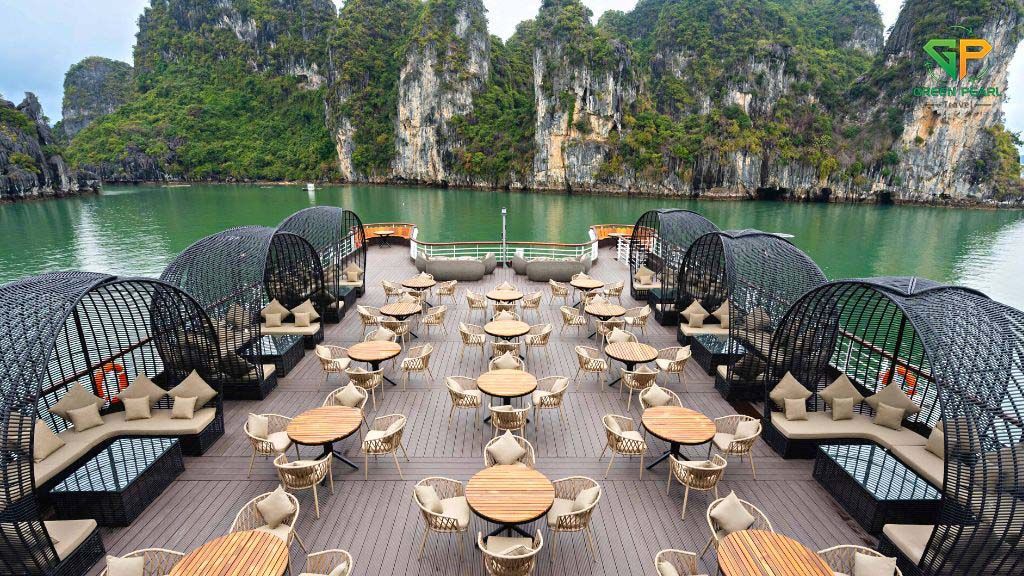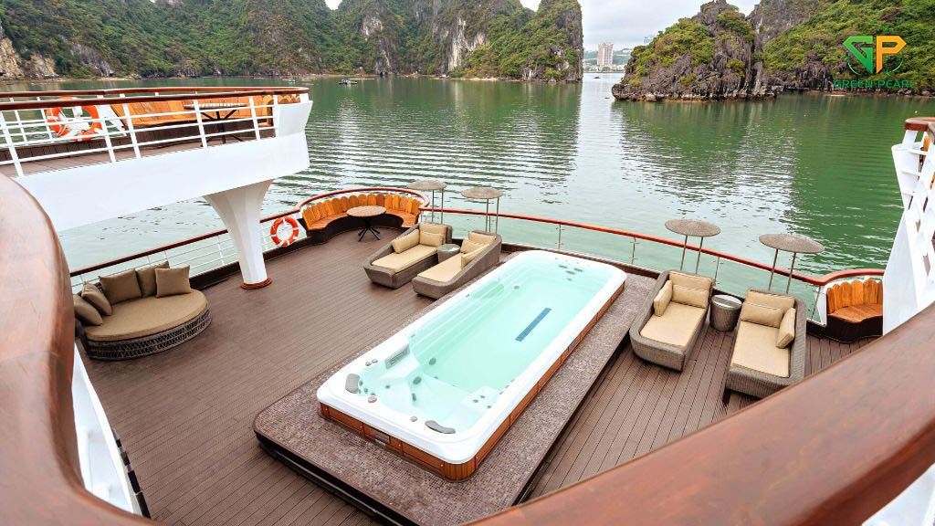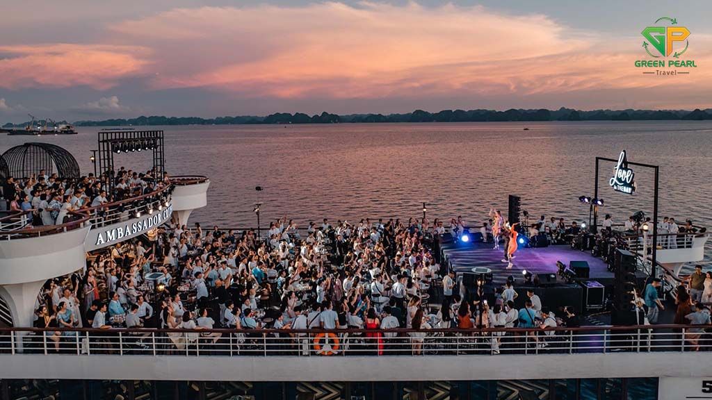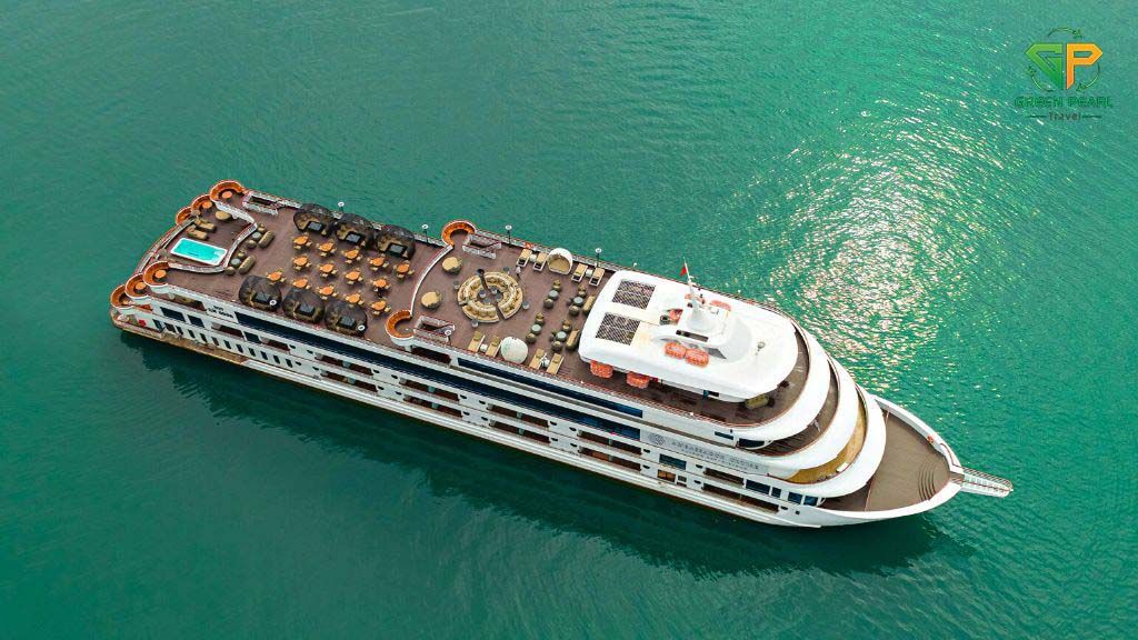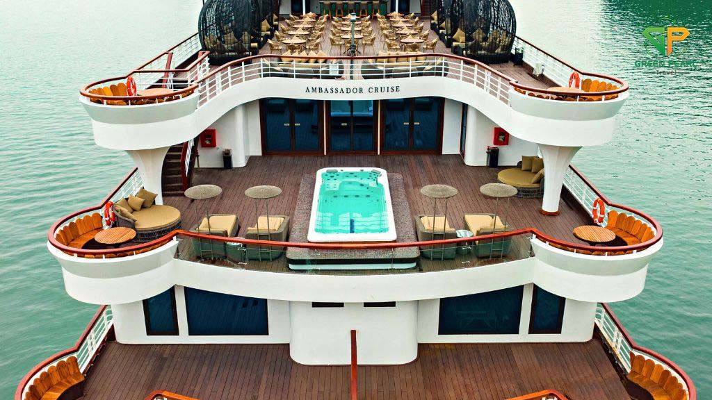 Ambassador là du thuyền 5 sao sở hữu thiết kế hiện đại, không gian rộng rãi, boong tàu thoáng đãng, giúp du khách tận hưởng khung cảnh hùng vĩ của vịnh Hạ Long một cách trọn vẹn.