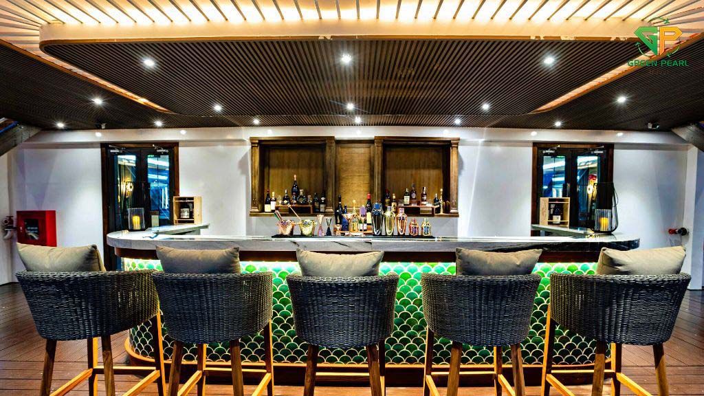 Không gian thư giãn với quầy bar sang trọng, âm nhạc du dương.