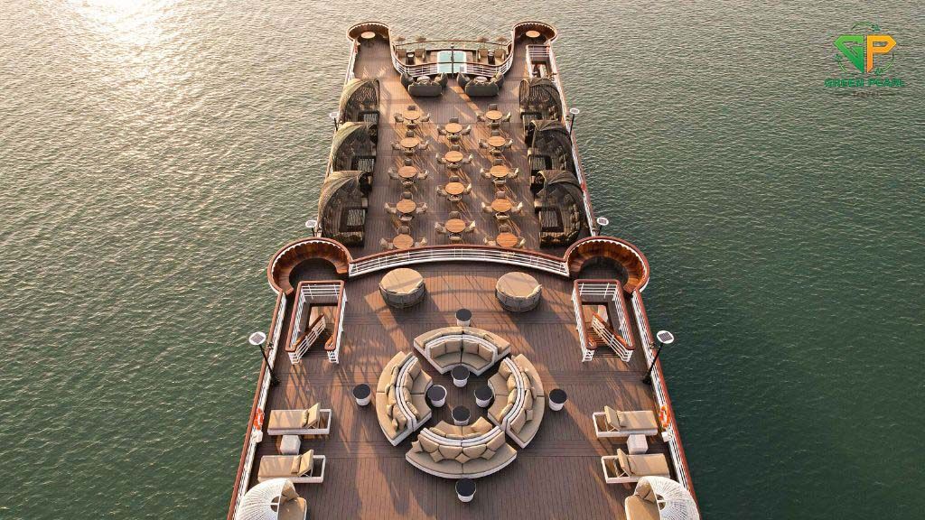 Khu vực sundeck rộng rãi, lý tưởng để chụp ảnh và ngắm hoàng hôn trên vịnh.