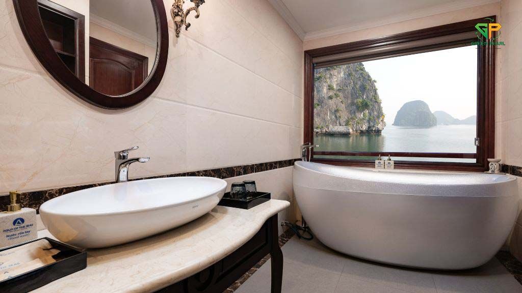 Aqua of the Seas gây ấn tượng với kiến trúc hiện đại, nội thất tinh tế kết hợp giữa phong cách châu Âu và Á Đông. Tất cả các phòng đều có ban công riêng, cửa kính lớn hướng biển, giúp du khách tận hưởng khung cảnh ngoạn mục ngay từ cabin.