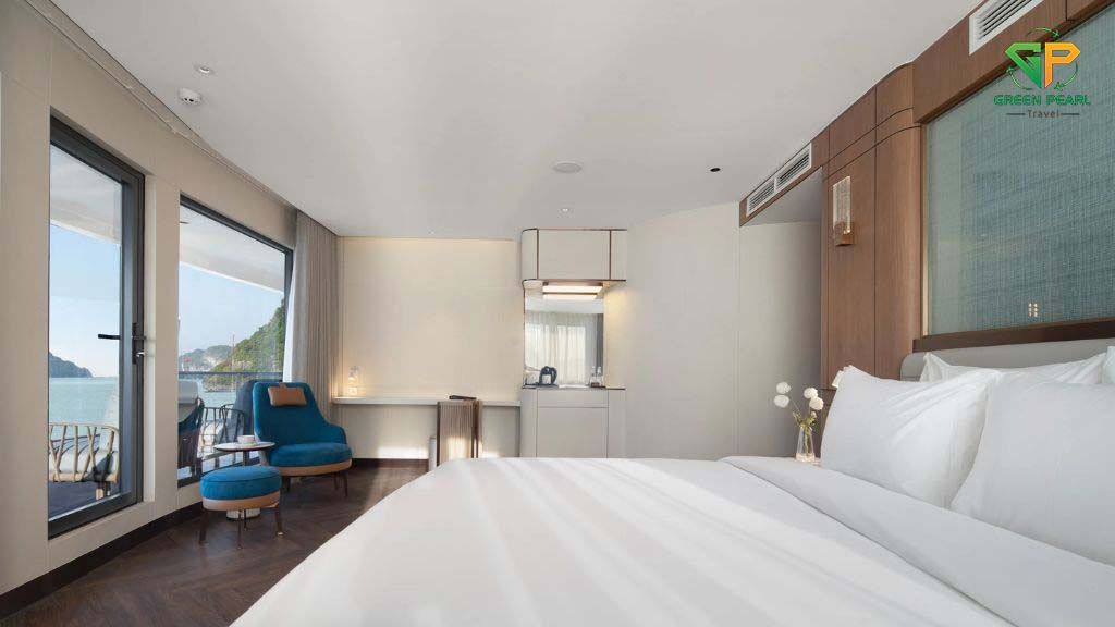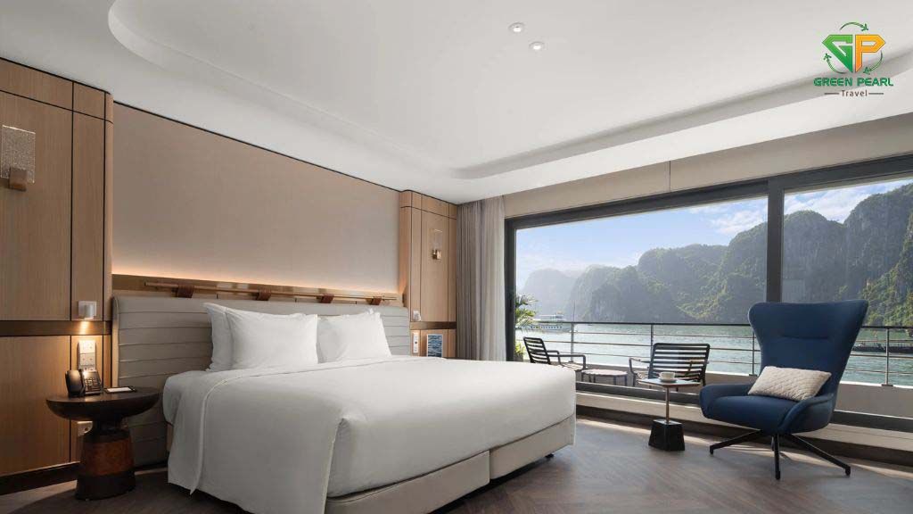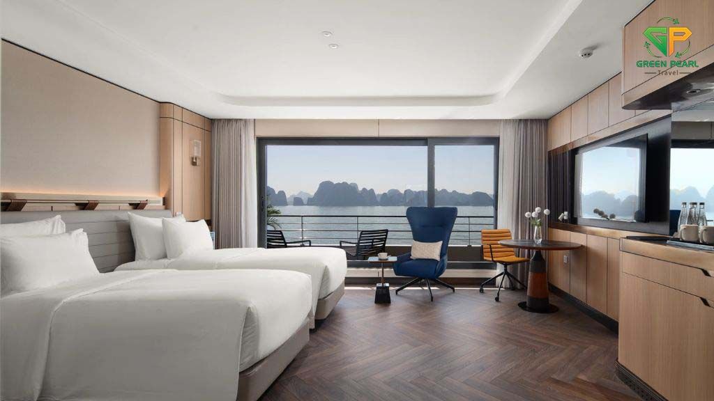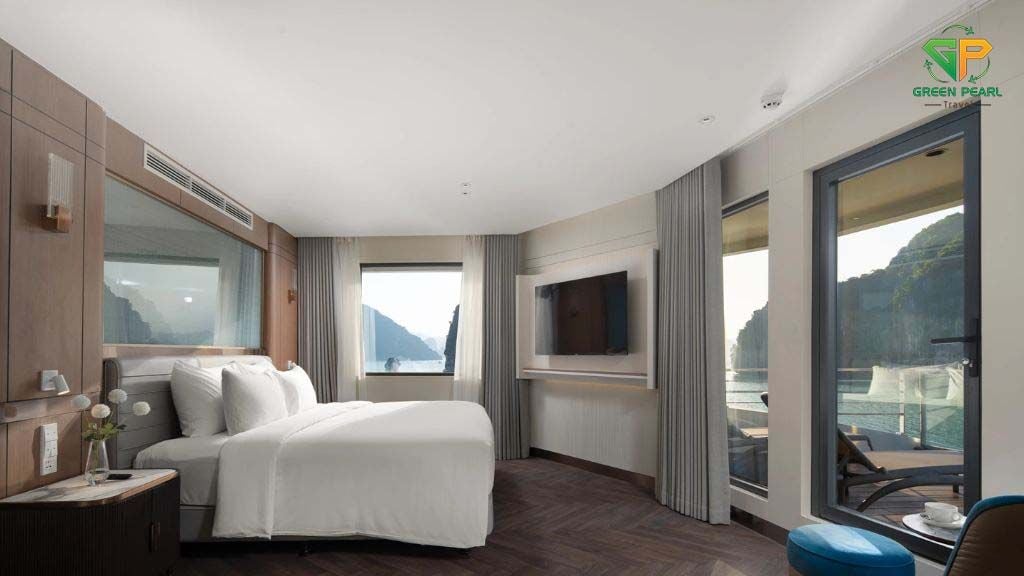 Grand Pioneers I sở hữu thiết kế tinh tế kết hợp giữa phong cách hiện đại và nét đẹp truyền thống Á Đông. Du thuyền có hệ thống phòng nghỉ rộng rãi với ban công riêng, nội thất cao cấp và trang bị đầy đủ tiện nghi như điều hòa, bồn tắm, TV màn hình phẳng và minibar.