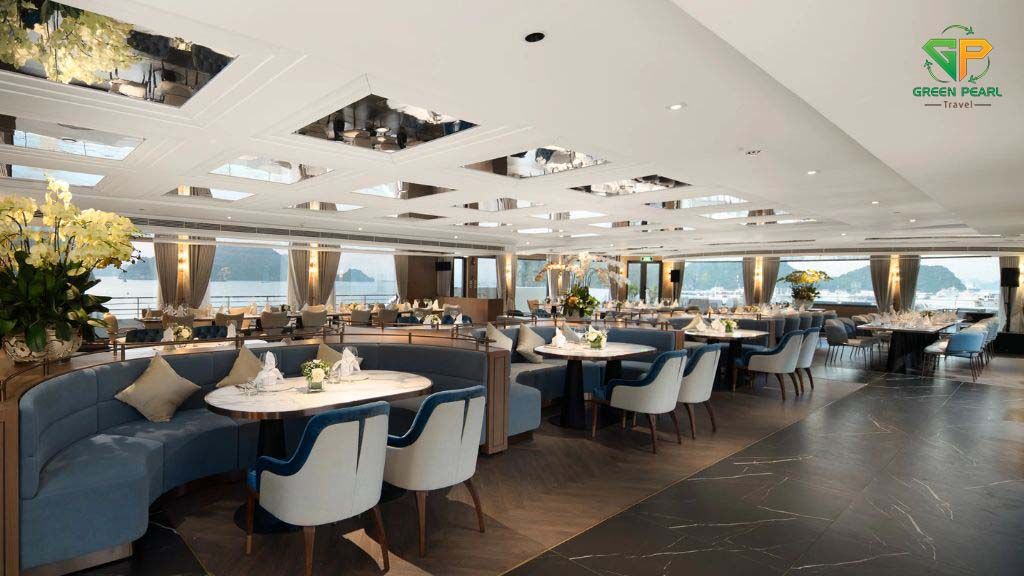 Du thuyền Grand Pioneers I phục vụ ẩm thực đa dạng với thực đơn phong phú từ hải sản tươi ngon đến các món ăn Âu – Á thượng hạng. Đội ngũ đầu bếp chuyên nghiệp luôn sẵn sàng mang đến những bữa ăn chất lượng, đáp ứng mọi khẩu vị của du khách.