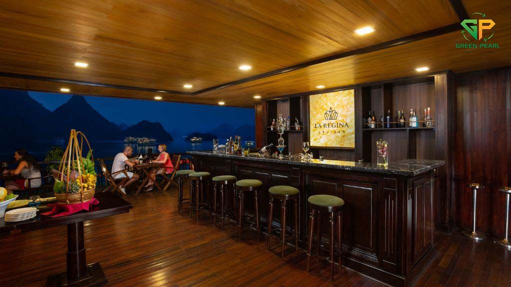 Du thuyền La Regina Legend phục vụ thực đơn đa dạng với các món ăn tinh tế từ hải sản tươi sống đến các món ăn Á – Âu đặc sắc. Đội ngũ đầu bếp chuyên nghiệp luôn sẵn sàng mang đến những trải nghiệm ẩm thực đẳng cấp. Ngoài ra, spa thư giãn và quầy bar sang trọng trên boong tàu giúp du khách tận hưởng khoảnh khắc thư thái tuyệt vời.