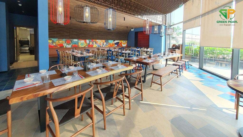 Nhà hàng tại Citadines Marina phục vụ các món ăn Á - Âu phong phú, kết hợp với hải sản tươi ngon đặc trưng của Hạ Long, mang đến trải nghiệm ẩm thực tinh tế.